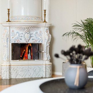 Auf dem Waldhof hatte man schon immer ein gutes Leben. Hohe Decken und elegante Details wie die schmucken Kachelöfen zeugen bis heute davon.