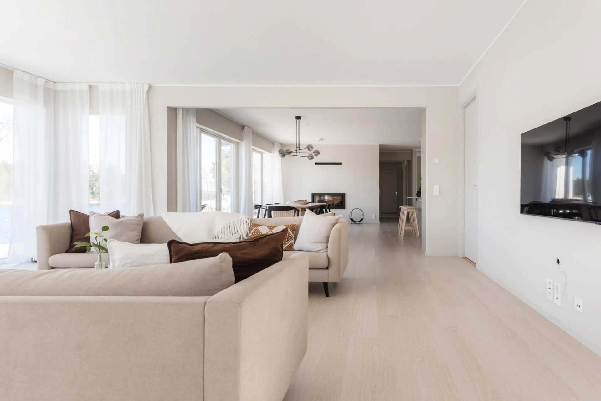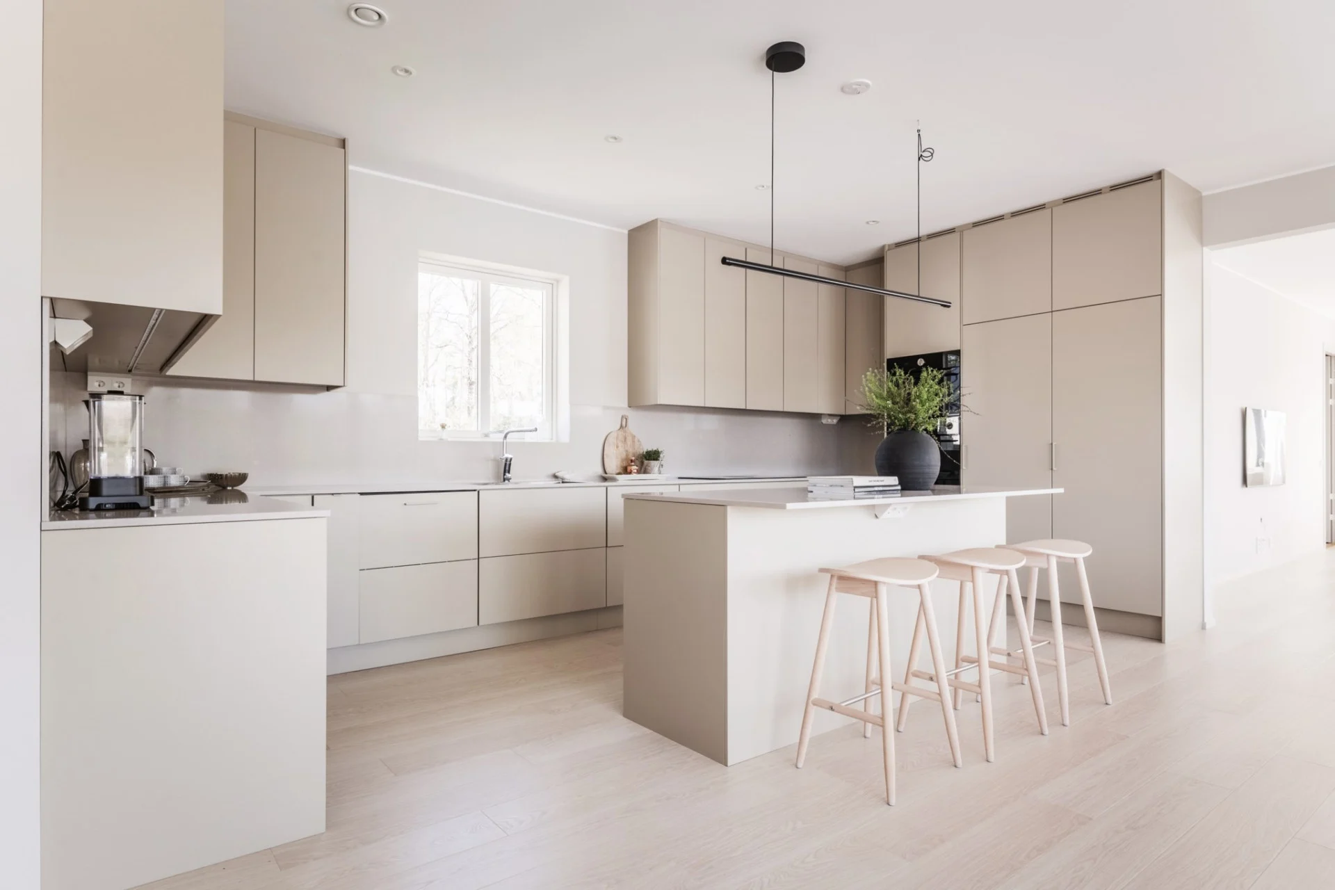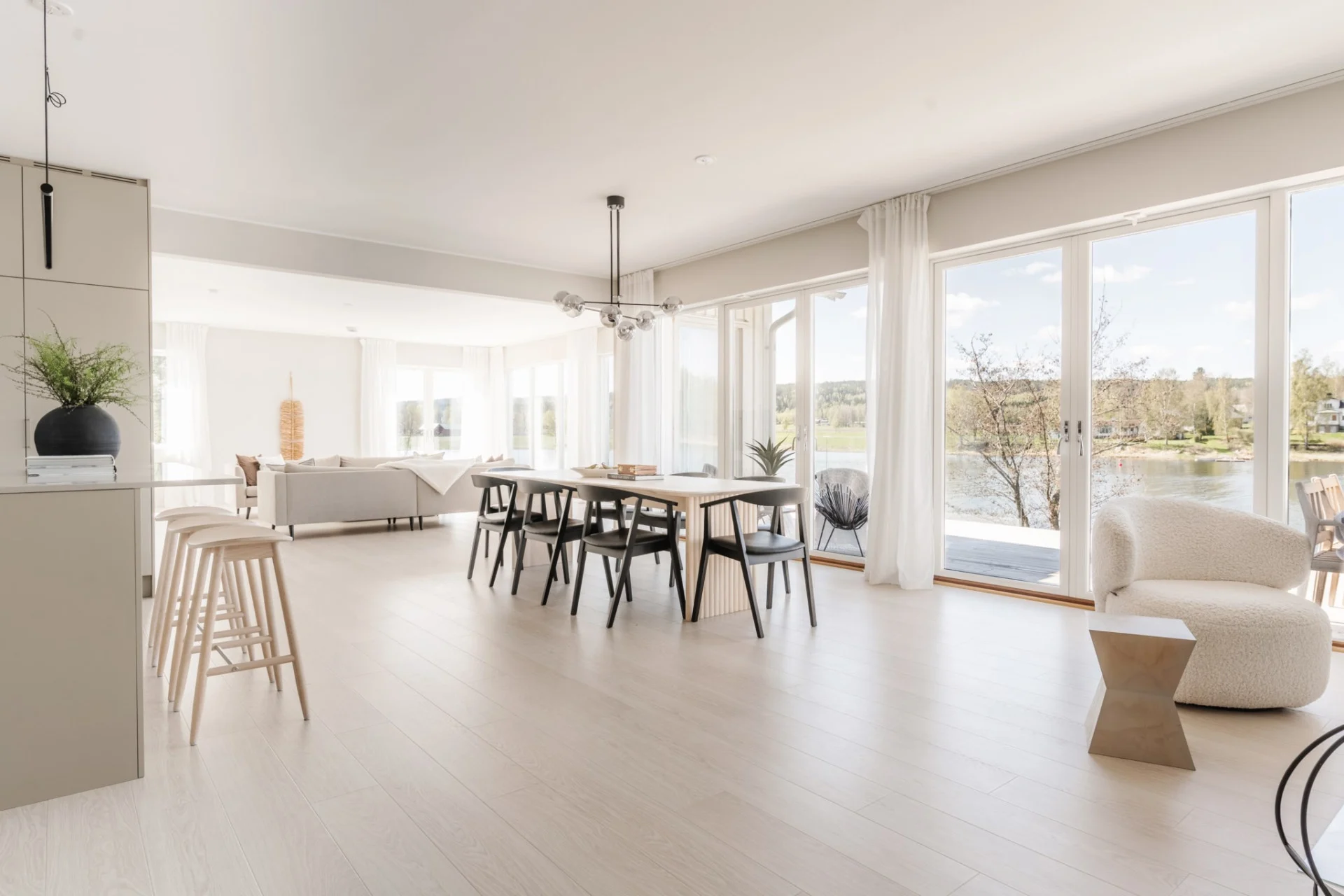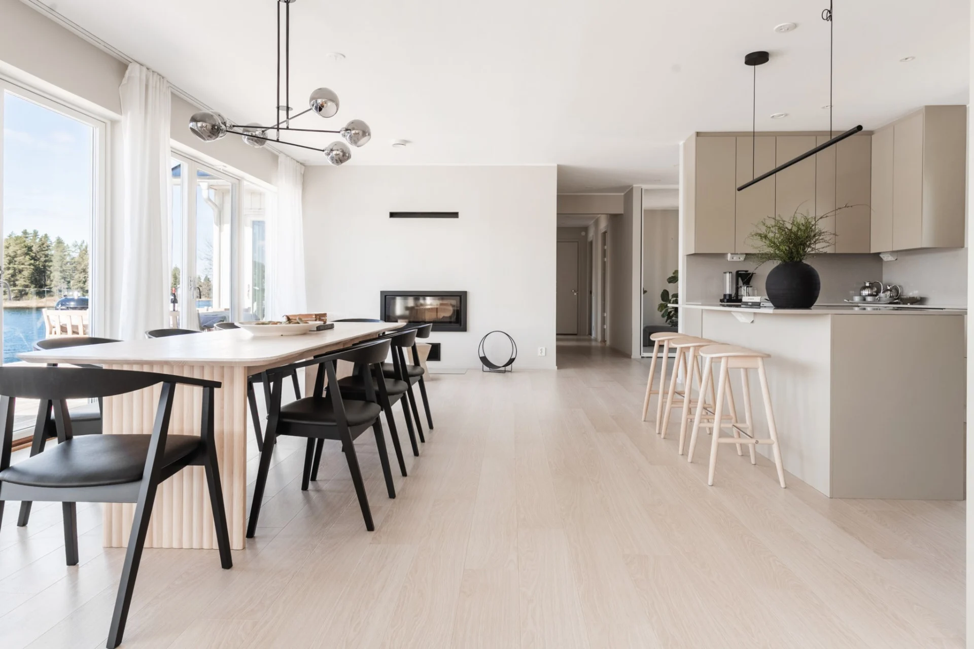 Höchste Qualität prägt die Räume, wobei - typisch skandinavisch - die Bereiche Kochen, Essen und Wohnen ineinander übergehen.