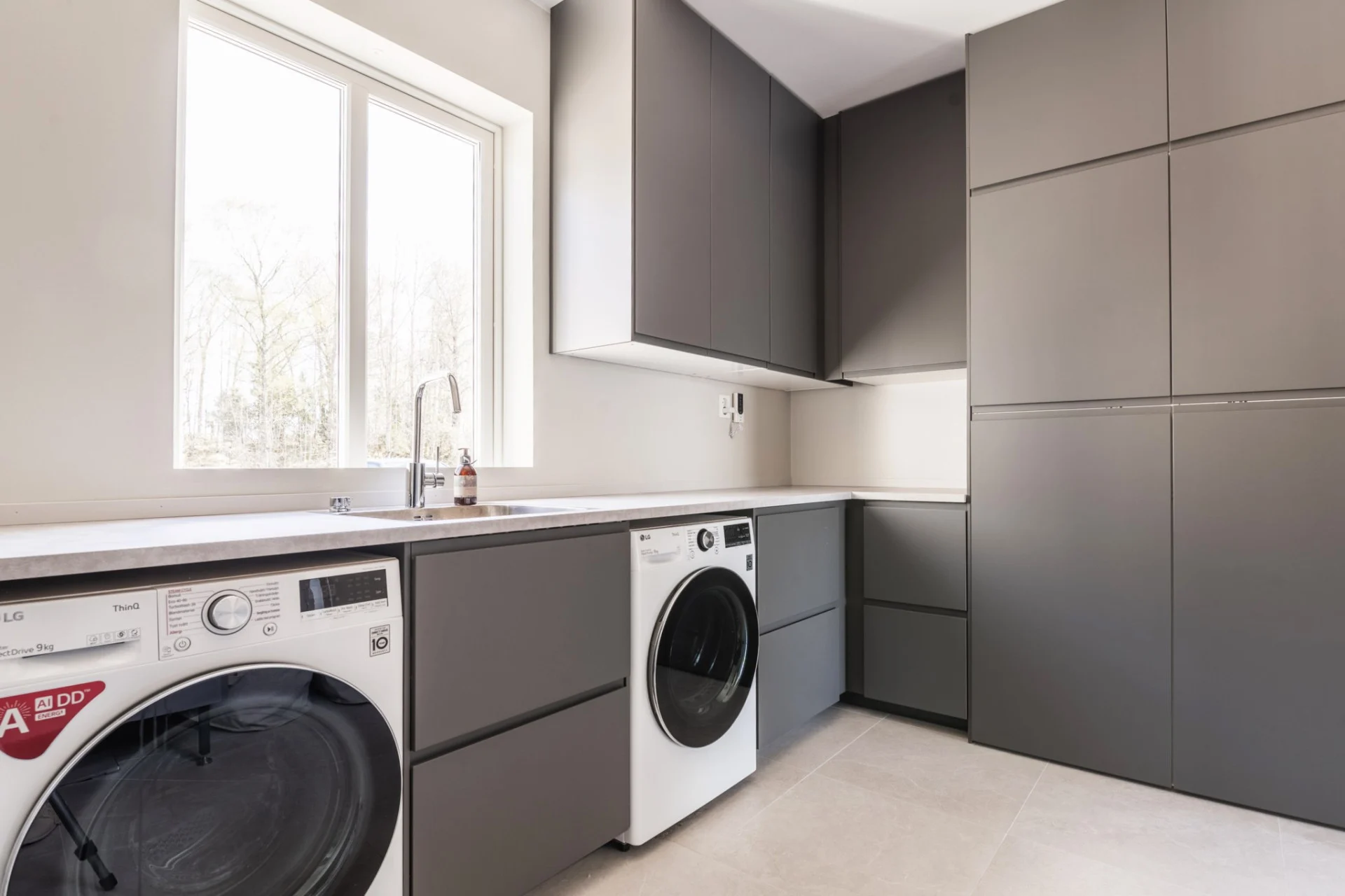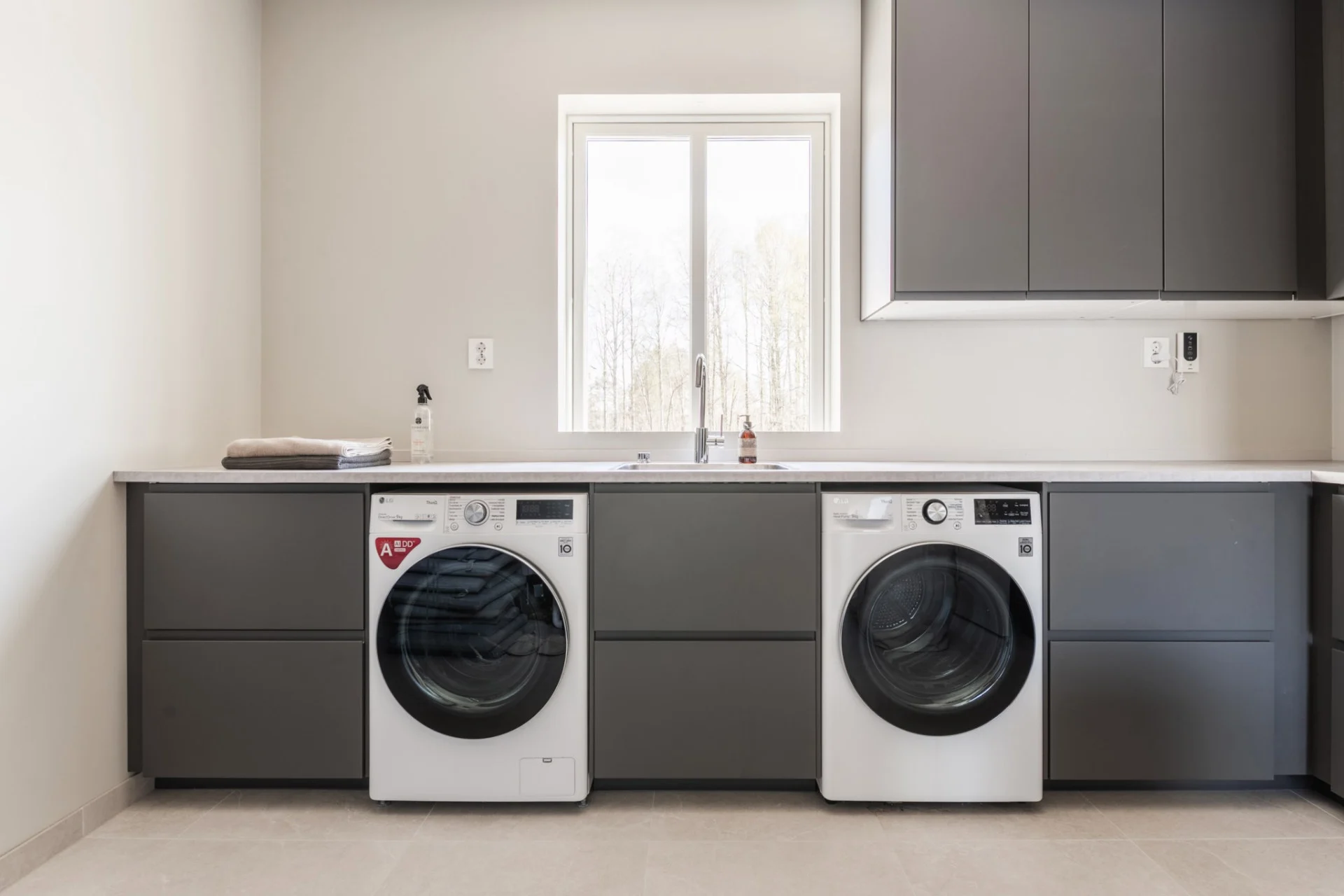 Die Waschküche ist perfekt eingerichtet und hat viele Staumöglichkeiten.