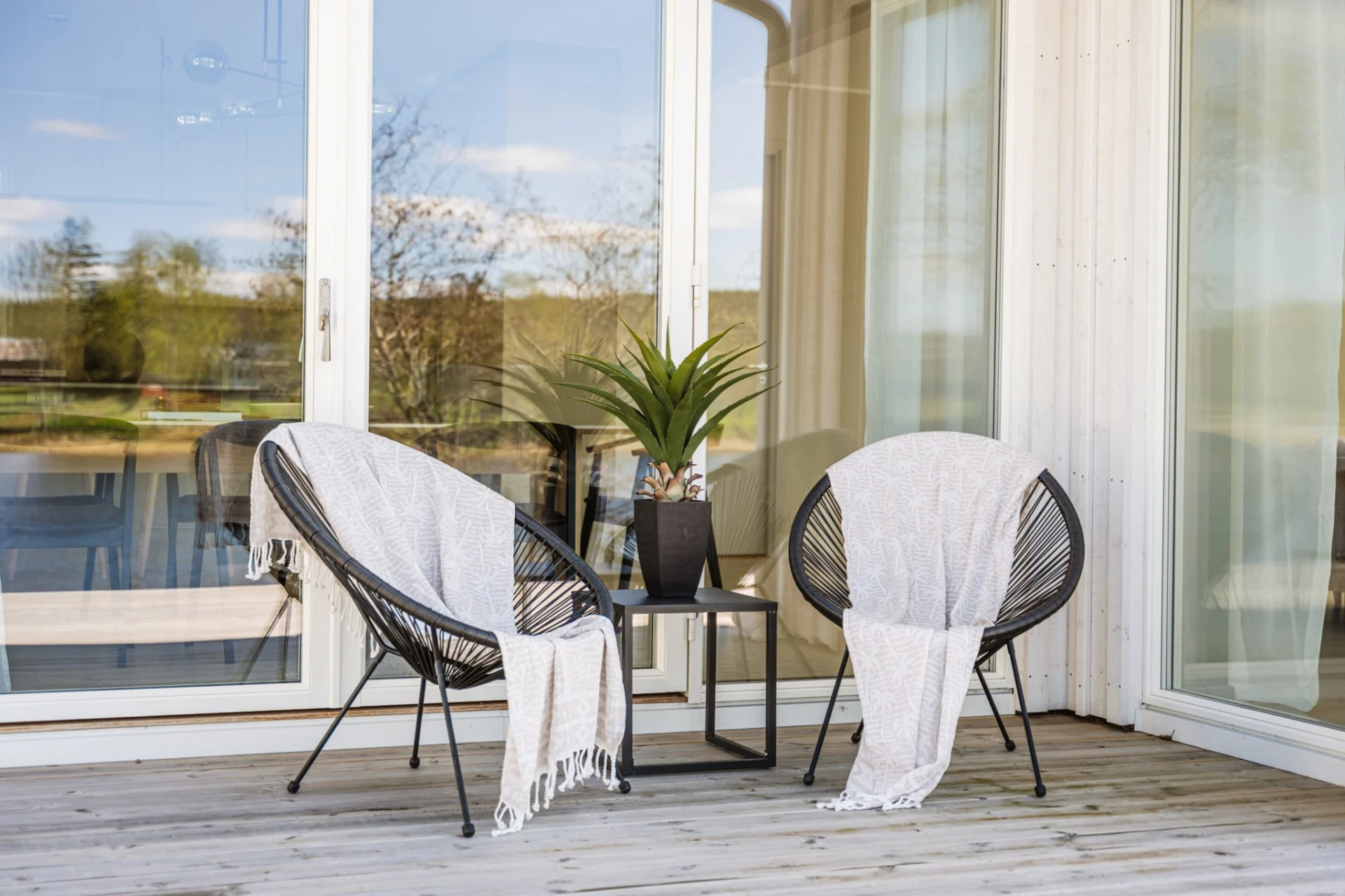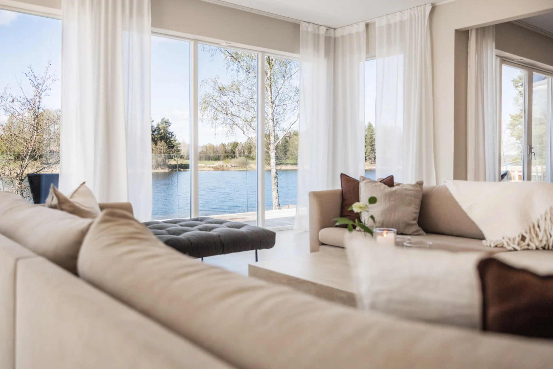Unschlagbar ist der Seeblick aus allen Räumen, denn das Haus befindet sich auf einer Halbinsel.