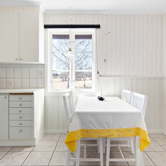 Das Haus bietet eine Küche mit Eßplatz am Fenster und einem Holzofen mit Dunstesse…