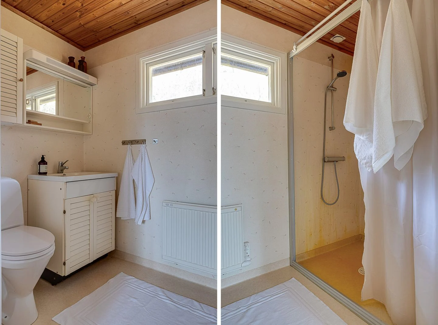 Eine moderne eigene Wasseranlage mit tiefgebohrtem Brunnen (60 m tief) sowie ein Ablaufsystem mit Infiltrationsbett bieten eine moderne Versorgung und sanitäre Anlagen, die über dem Standard für Seelagen liegen.