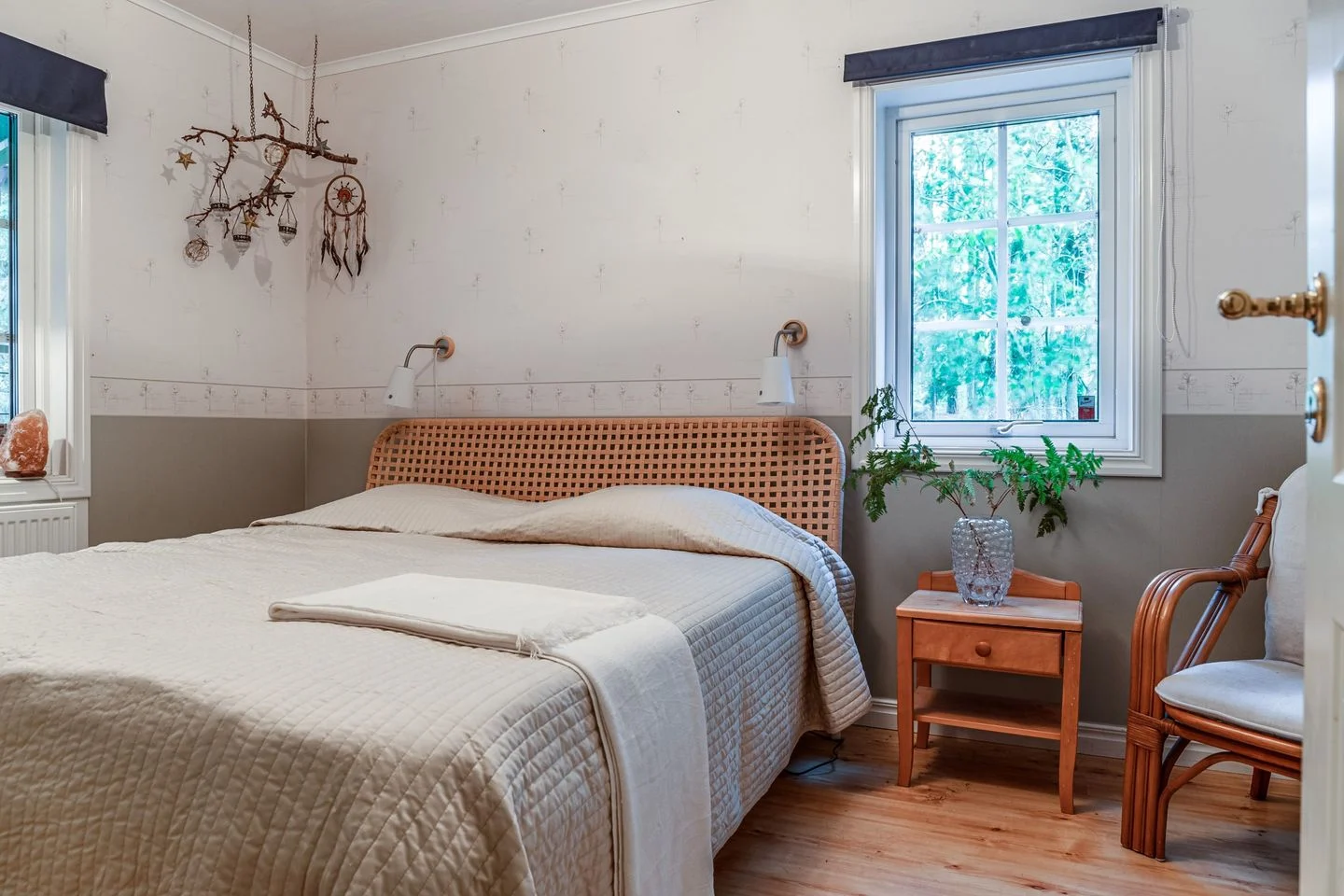 Drei Schlafzimmer im Erdgeschoß, zwei Schlafräume im Dachgeschoß sowie ein großer Wohnbereich mit Zugang zum Balkon. Ein Schlafraum und das Bad haben einen herrlichen Blick über den See.