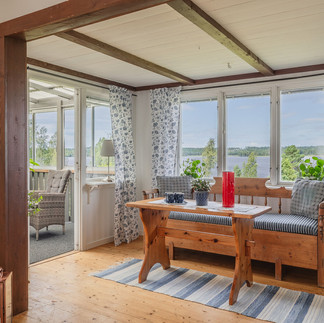 Das Haus birgt den Charme einer klassischen schwedischen Stuga, die ganzjährig bewohnbar ist. Die verglaste Veranda wurde erst 2025 erneuert.
