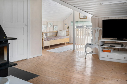 Im Dachgeschoß treffen Sie auf eine wunderbar gemütliche Wohndiele mit Kaminofen.